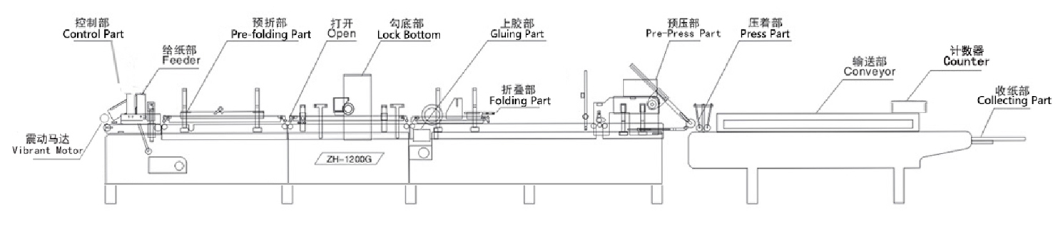 ZH-1050D/1250D/1450D全自動預折勾底糊盒機